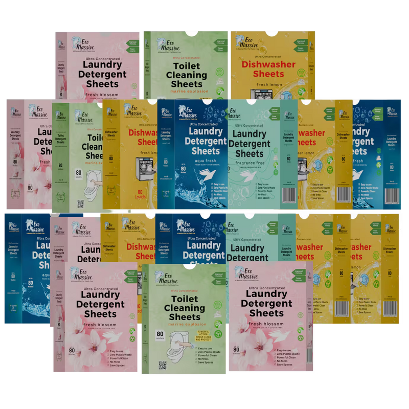 At Eco Massive, we make switching to eco-friendly cleaning simple, affordable, and effective. Our eco-friendly cleaning sheets are designed for modern households that want powerful cleaning without plastic waste. From laundry to dishwasher and toilet care, our compact sheets dissolve quickly, clean deeply, and help reduce single-use plastic from everyday routines.
